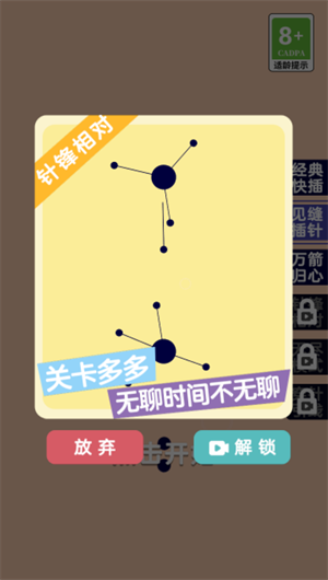 創(chuàng)新玩法:“穿針引線”模式的創(chuàng)新玩法,打破了傳統(tǒng)游戲的模式,給你帶來全新的游戲體驗(yàn)。