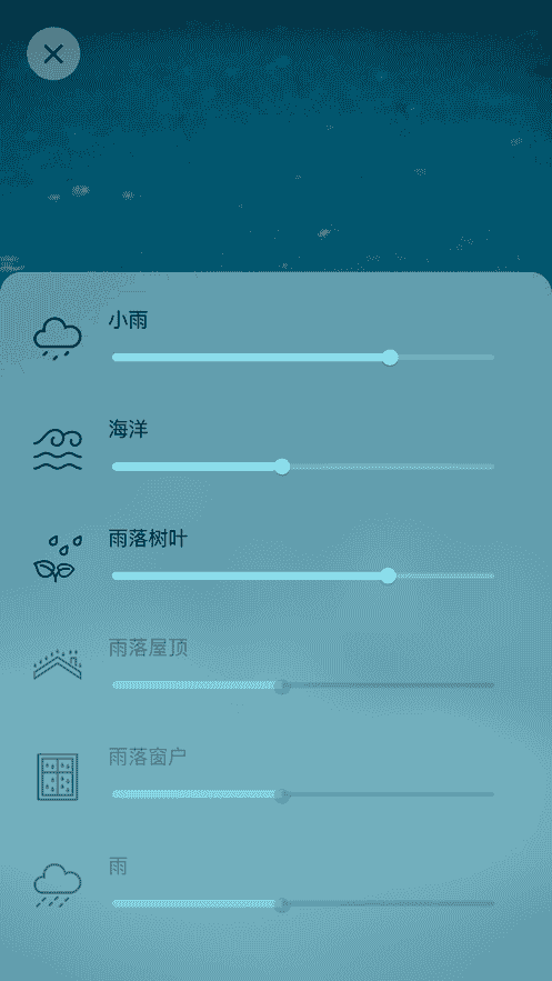 2、不同的場(chǎng)景播放不同類型的音樂(lè),冥想、城市、森林、雨季等8大場(chǎng)景助眠放松音樂(lè)。