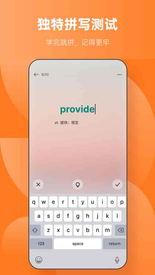 6、獨特拼寫測試,學完就拼,記得更勞。