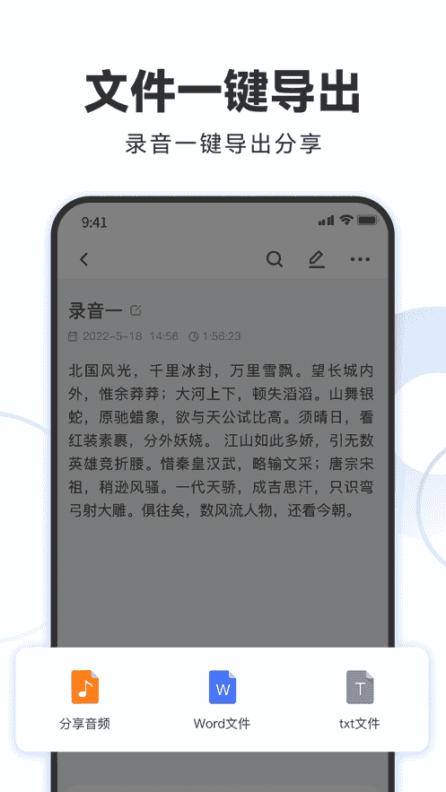 4、錄音文件可以一鍵導出,隨時隨心進行分享。