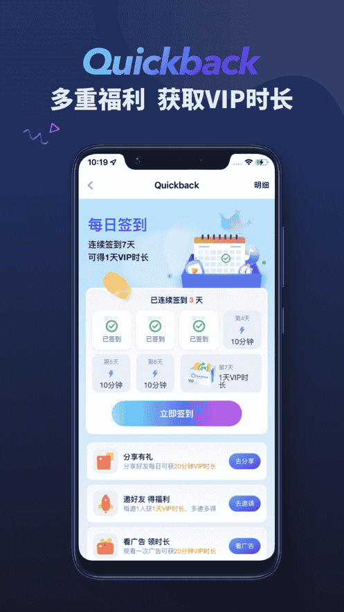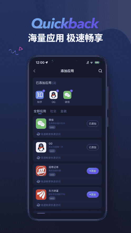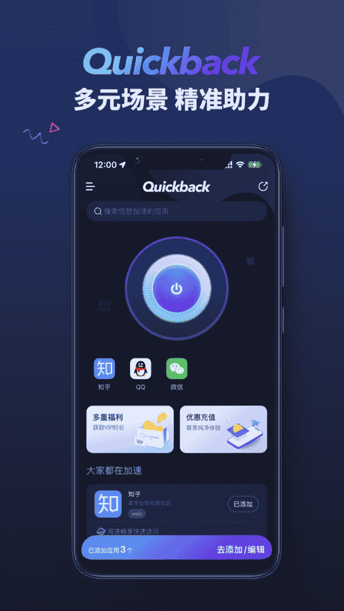 Quickback加速器,應用加速神器,由北京冠悅科技有限公司一手打造的加速器平臺,高速度、高帶寬,一鍵回國。