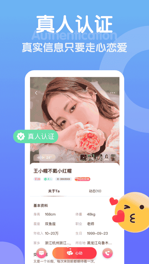 歡甜App,由杭州追一網絡技術有限公司傾力打造,同城約會,真人交友,可以隨時暢聊,在這里相信我,你能遇見喜歡的Ta。