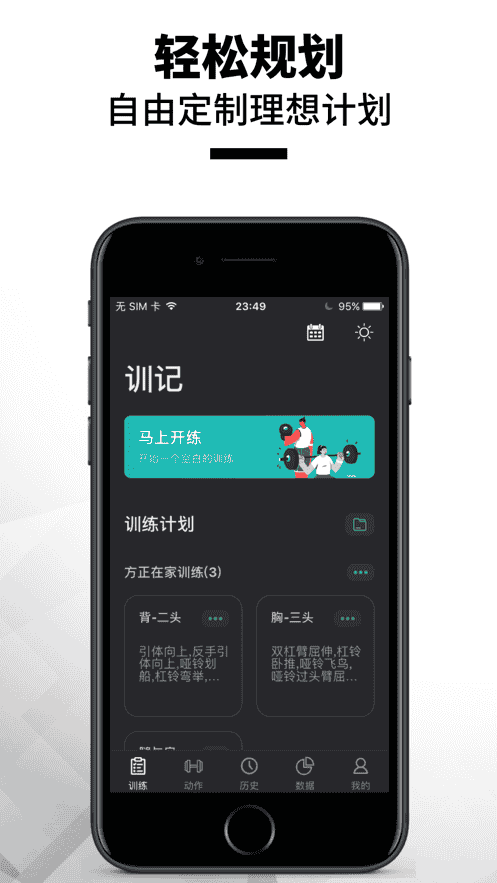 解鎖訓記App,開啟一種全新的訓練方式,讓每位用戶的健身記錄隨人而行,每天訓練一點點,讓用戶未來可期!