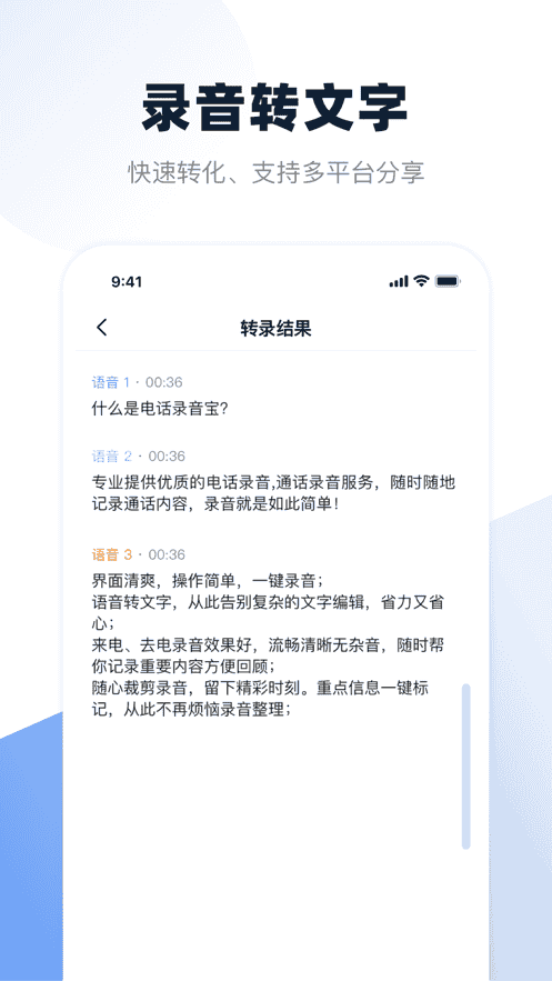 3、錄音轉文字,能夠快速轉化,同時支持多平臺分享。