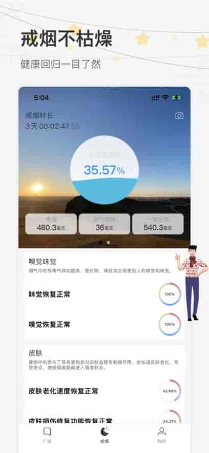 戒煙有術App,讓你控煙健康恢復看得見,戒煙報告隨時查看,如果您已經準備好并打算戒煙或控煙,那么就趕快下載吧,預祝每位煙民戒煙成功!