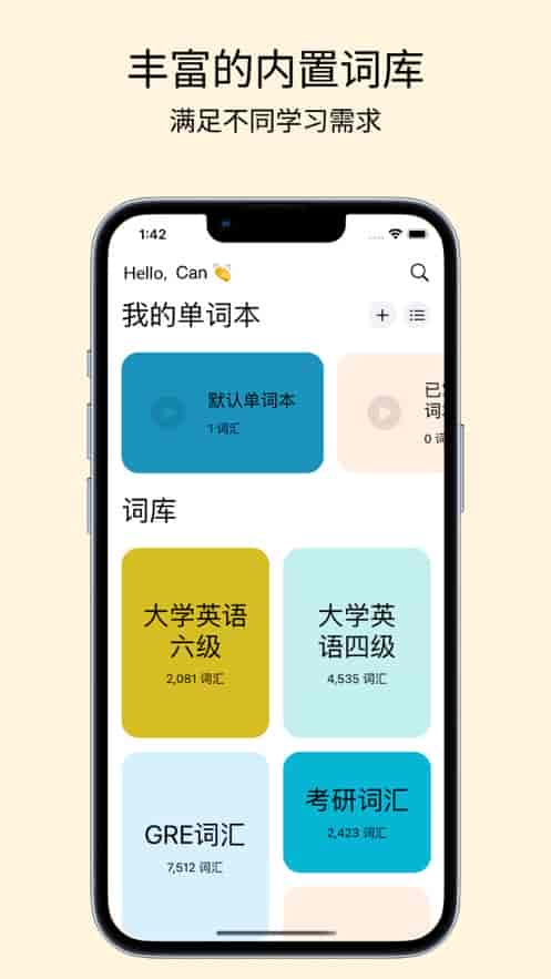 1、豐富的內(nèi)置詞庫,滿足不同學(xué)習(xí)需求。
