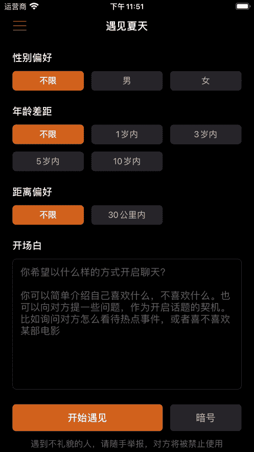 3、每段開場白都是讓別人眼前一亮的,遇到不禮貌的人可以隨時舉報,對方就會被禁止使用。