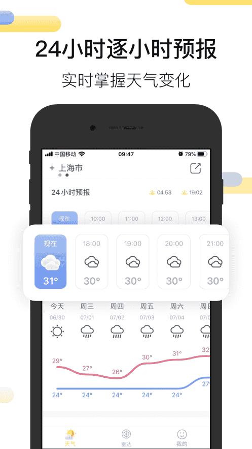 4、未來24小時,為你預報幾點下雨,幾點溫度變化,盡在掌握中。