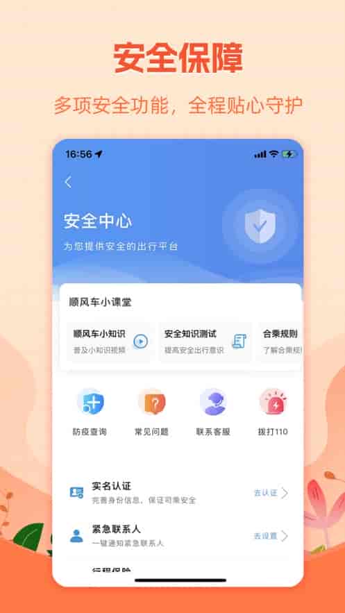 5、多種行程安全保障,緊急聯(lián)系人,一鍵報(bào)警,親友護(hù)航,保你出行無(wú)憂。