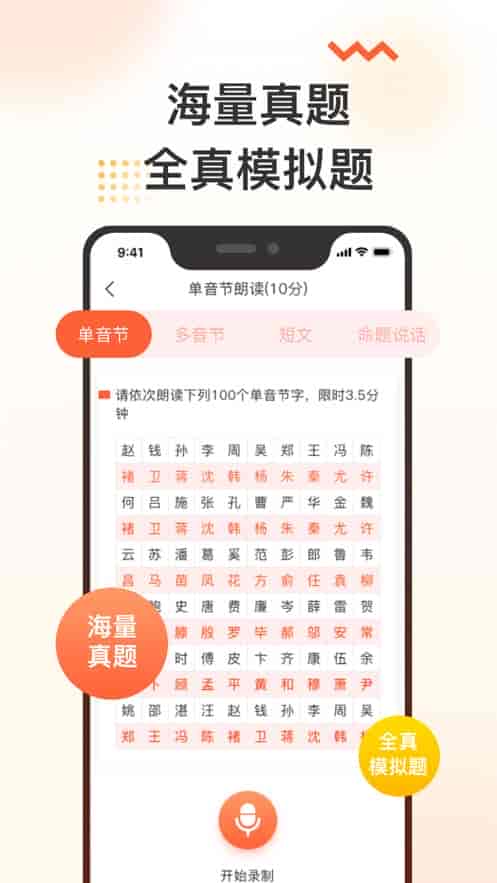 3、專項練習,提供全面的聲母、韻母、聲調、單音節字、多音節詞、短文朗讀等練習,薄弱環節針對性練習,讓考試成績更優。