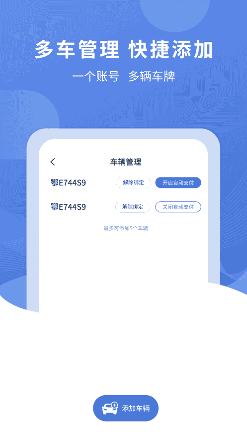 5、多車管理,快捷添加,一個賬號,多輛車牌。