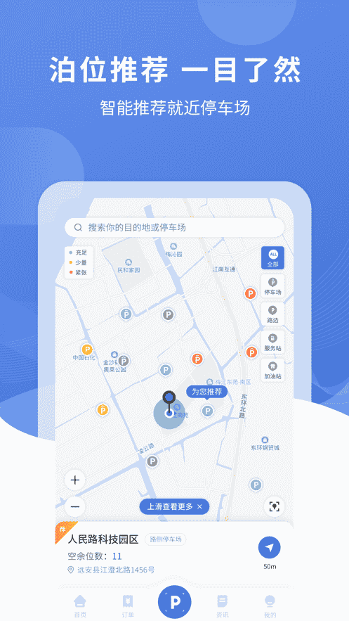 2、泊位推薦,一目了然,智能推薦就近停車場。