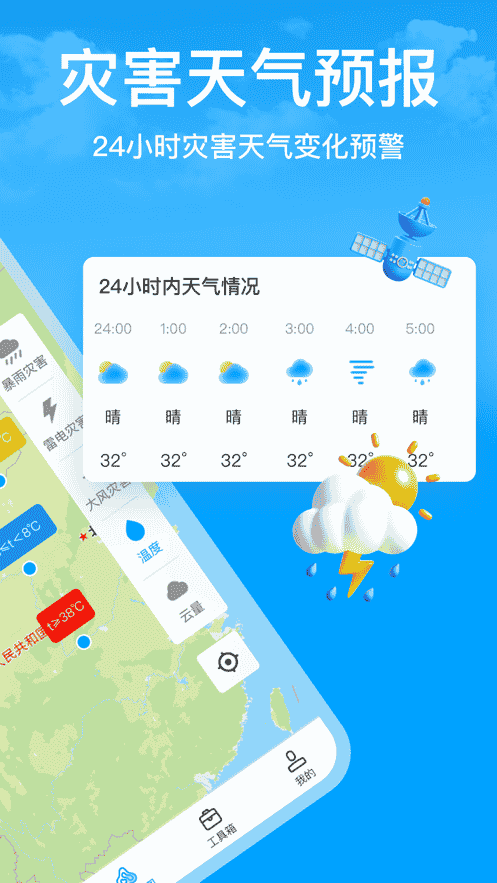 3、災害天氣預報,24小時災害天氣變化預警。