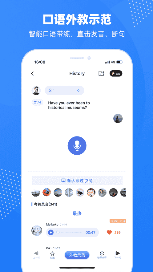 3、口語外教示范,智能口語帶練,直擊發音、斷句。