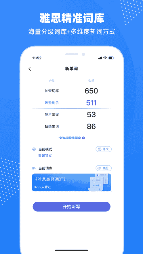 4、雅思精準詞庫,海量分級詞庫,多維度斬詞方式。
