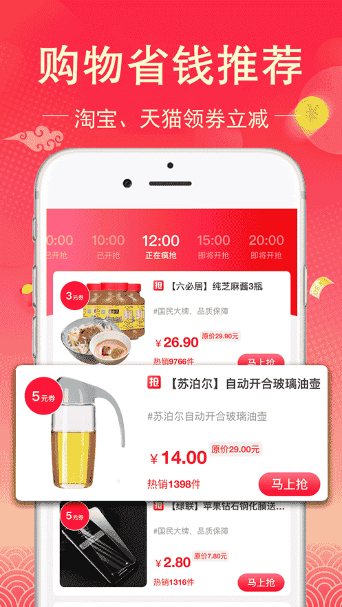 1、購物省錢推薦,淘寶、天貓等領券立減。