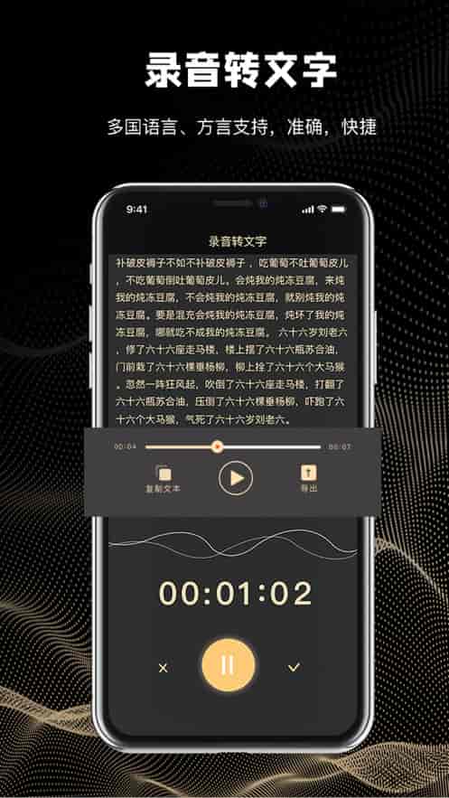 專業語音備忘錄錄音機App,一款簡潔的錄音軟件,與此同時適用語音轉換文字、實時語音轉換文字,可切換多種語言,并無次數限制無時長限制!