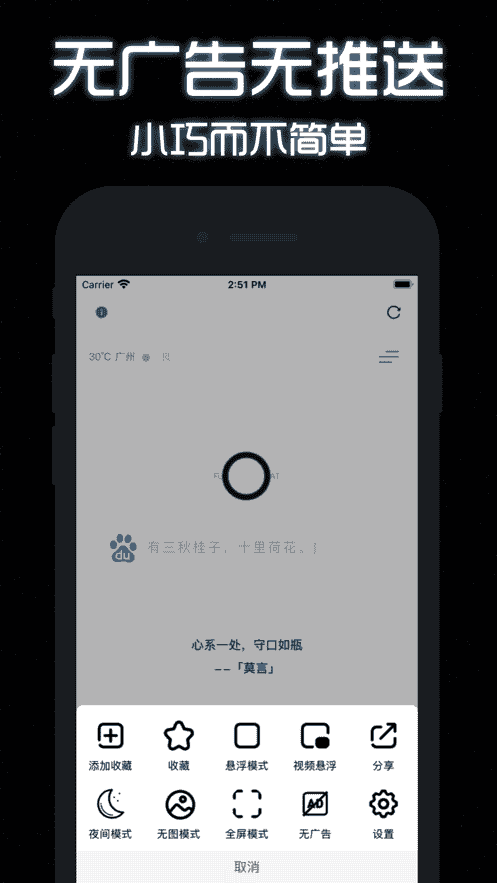 2、節(jié)省流量,保存網(wǎng)頁(yè)以稍后讀或離線查看,智能無(wú)圖,強(qiáng)勁的廣告攔截。