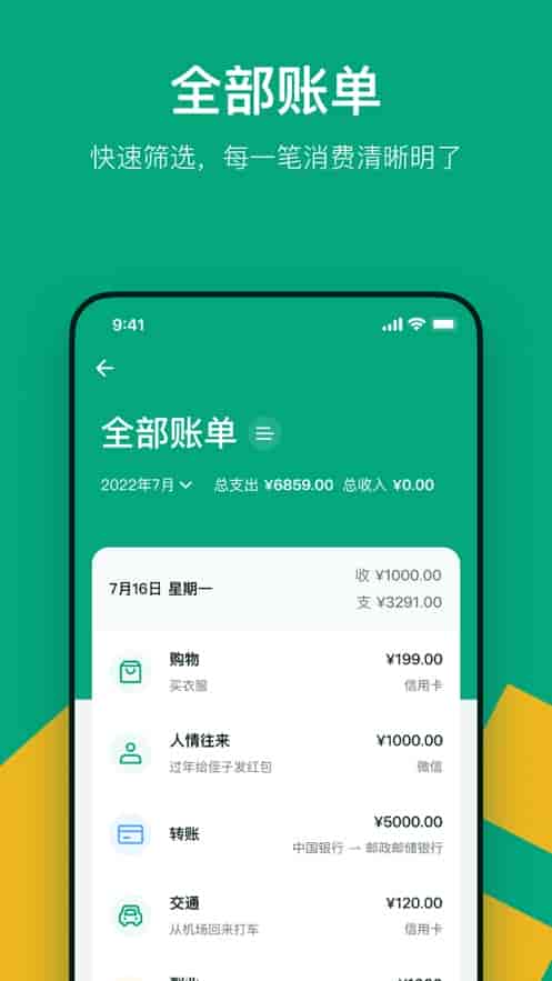 4、全部賬單,快速篩選,每一筆消費清晰明了。