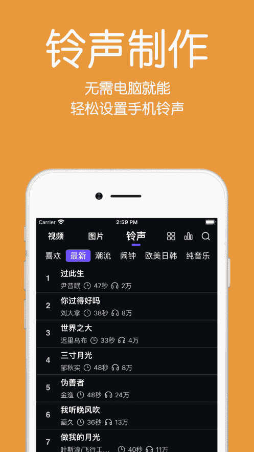 3、鈴聲制作,無需電腦就能輕松設置手機鈴聲。
