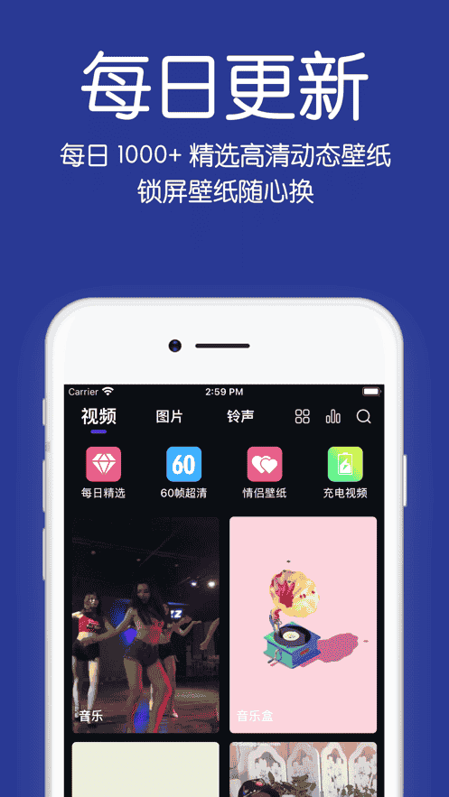 2、每日更新,每日1000+精選高清動態(tài)壁紙,鎖屏壁紙隨心換。
