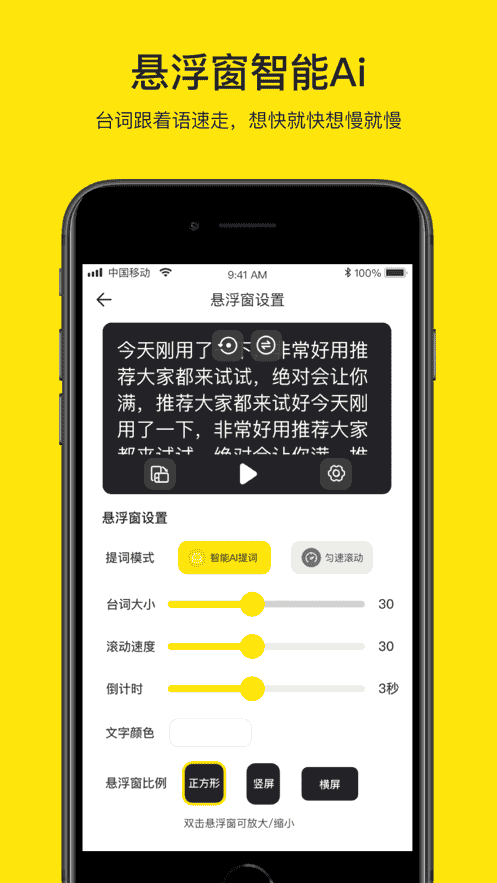 1、懸浮窗智能AI設計,臺詞對白跟著說話速度走,想快就快,想慢就慢,精準定位。