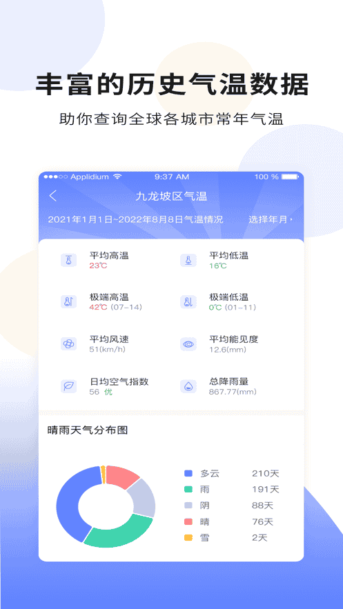 4、豐富的歷史氣溫數據信息,助你查詢全球各個城市常年氣溫,全球天氣預報,隨時隨地知曉世界天氣。