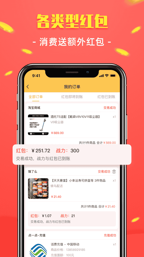 5、各類型現金紅包,消費更送大額額外現金紅包。