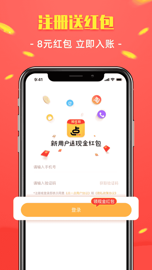 4、注冊送紅包,8元現金紅包,立即進賬。