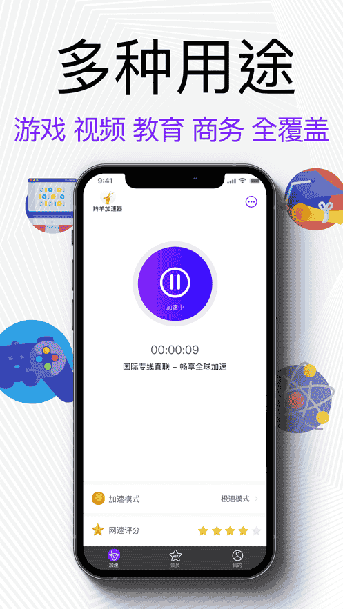 2、簡單易用,應用加速選用智能加速模式,多種多樣用途,游戲、視頻、教育、商務全覆蓋。