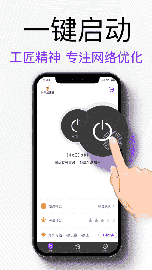 3、一鍵啟動快速連接國內,我們具有工匠精神,專注網絡優化十年。