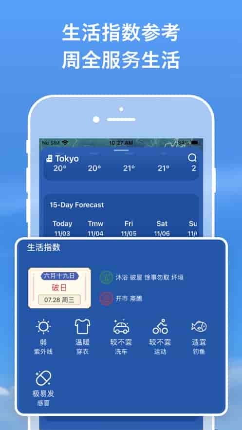 3、立即獲得您所在位置的天氣預報變化和空氣污染指數(shù),參照生活指數(shù),全面服務生活。