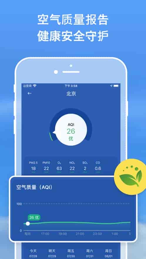2、空氣質量報告每小時覆蓋中國PM2.預測,為您的健康提供保障。