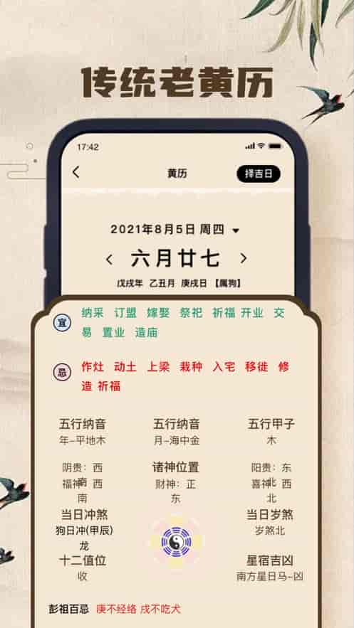 3、傳統(tǒng)的老黃歷,定制專屬運程,每天吉祥防逆水。