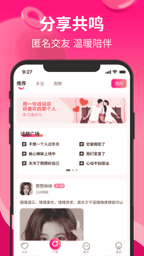 2、分享你的共鳴,找密名交友,一定要有溫暖的陪伴。