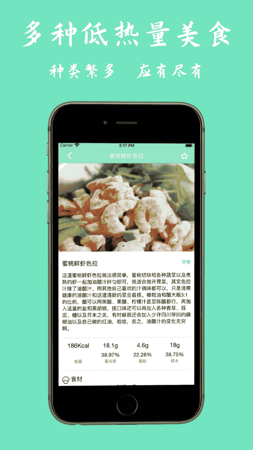 3、食譜推薦,各種食物推薦,讓你的減脂生活更加多樣化。