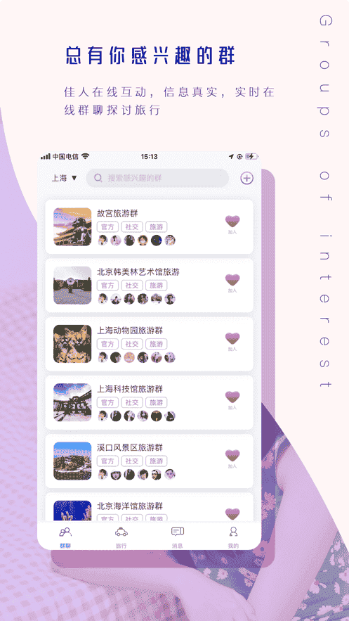 3、總有你感興趣的群體,美女在線互動,真實信息,實時在線群體討論旅游。