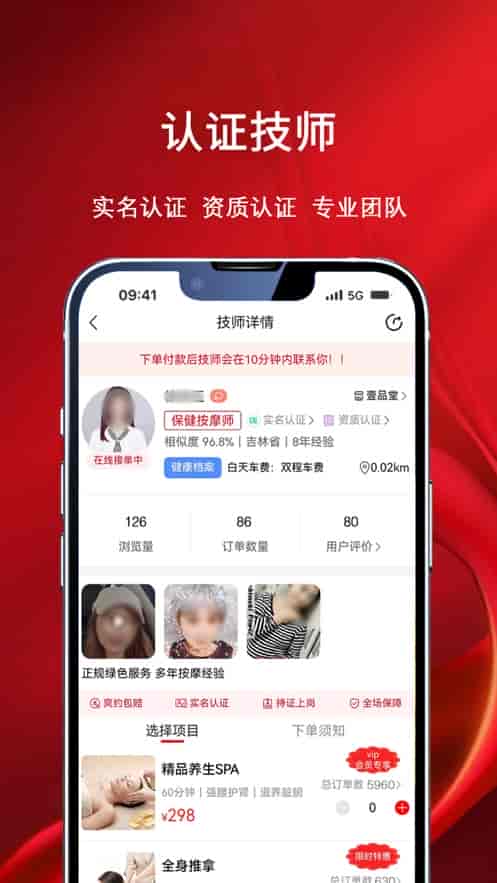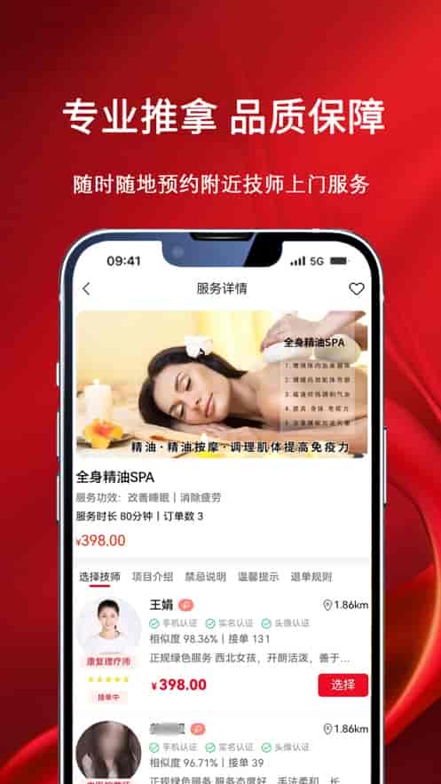 3、專業按摩,質量保證,隨時預約周邊技師上門服務。