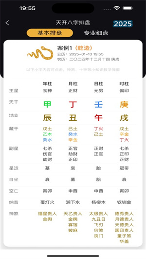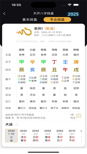 1.八字排盤與精準分析:軟件的核心功能是“八字排盤”,用戶只需輸入出生日期和時間,系統即可自動生成詳細的八字命盤。通過“命盤解析”功能,軟件會對八字中的天干地支、五行屬性、十神關系等進行精準分析,幫助用戶深入了解自己的命理格局。此外,軟件還支持“流年運勢”功能,用戶可以查看未來幾年的運勢變化,提前規劃人生。