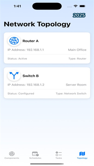 1.網絡組件管理與詳細信息記錄:軟件提供“網絡組件管理”功能,用戶可以記錄每個網絡組件的詳細信息,包括IP地址、MAC地址、固件版本等。通過“組件分類”功能,用戶可以根據設備類型或位置對網絡組件進行分類,方便快速查找和管理。此外,軟件還支持“組件狀態監控”功能,用戶可以實時查看網絡組件的運行狀態,及時發現并解決問題。