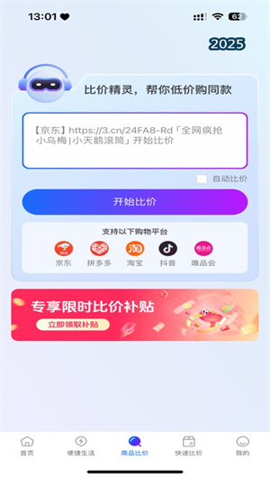3.多平臺支持與一鍵跳轉:軟件支持“多平臺比價”功能,涵蓋淘寶、京東、拼多多等主流電商平臺,用戶可以在一個應用中完成全平臺比價。通過“一鍵跳轉”功能,用戶可以直接從比價精靈跳轉至商品購買頁面,簡化購物流程。此外,軟件還支持“跨平臺購物車”功能,用戶可以將不同平臺的商品加入購物車,方便統一結算。