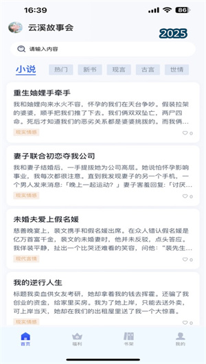 云溪故事會App是一款專注于短篇故事閱讀與分享的移動應用軟件,旨在為用戶提供豐富多樣的故事內容和沉浸式的閱讀體驗。通過云溪故事會App,用戶可以輕松瀏覽各類好看的短篇故事,涵蓋懸疑、愛情、科幻、歷史等多種題材。無論是尋找靈感、放松心情,還是提升閱讀興趣,云溪故事會App都能滿足用戶的需求。其智能推薦、個性化書單、互動社區等功能,讓閱讀變得更加有趣和便捷,成為用戶日常生活中的故事伴侶。