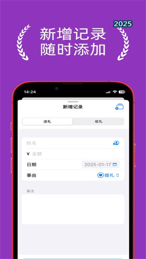 禮記App支持快速記錄送禮和收禮的金額,用戶只需輸入金額、事由、日期和備注,即可完成禮金記錄。通過禮記App的自動統計功能,系統會實時計算往來收支總額,幫助用戶清晰掌握人情賬目。此外,禮金記錄還支持分類查看功能,用戶可以按場合或時間篩選記錄,方便查詢和管理。