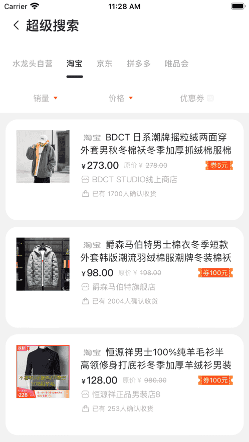 5、覆蓋淘寶天貓、拼多多等各大電商平臺,全網(wǎng)覆蓋最全折扣、線下商家折扣等。