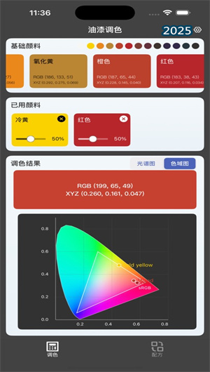 該應用支持配方計算功能,用戶可以輸入目標顏色,系統會自動計算出最佳的顏料混合方案。通過數值優化算法(Scipy優化器),APP能夠快速找到最優配比,確保顏色匹配的準確性。這一功能特別適合需要高效調色的用戶,提升了調色的科學性和效率。