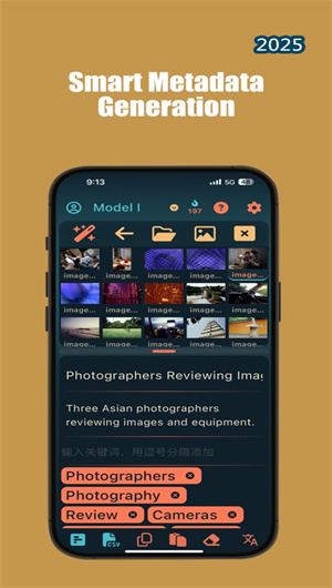 1. 專業(yè)元數(shù)據(jù)管理:圖庫AI助手App提供專業(yè)的元數(shù)據(jù)管理功能,用戶可以通過自定義模板調(diào)整AI生成的內(nèi)容。通過批量操作和本地優(yōu)先處理,軟件確保數(shù)據(jù)處理的隱私性和安全性,滿足用戶的高效管理需求。
