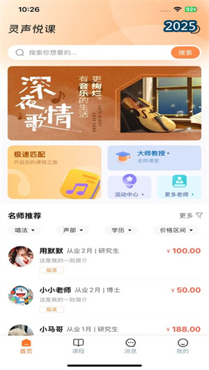 靈聲悅課App內(nèi)置智能音域測(cè)試功能,用戶可以通過App測(cè)試自己的音域范圍,并生成詳細(xì)的音域報(bào)告。例如,系統(tǒng)會(huì)根據(jù)測(cè)試結(jié)果為用戶推薦適合的練習(xí)曲目和課程內(nèi)容。這種定制化的課程推薦,結(jié)合音域數(shù)據(jù)分析,幫助用戶更有針對(duì)性地提升演唱能力。
