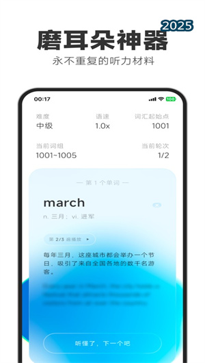 天天磨耳朵App支持碎片化學習模式,用戶可以利用通勤、運動或休息時間進行聽力訓練。例如,用戶可以在等車時聽一段簡短的對話,或在跑步時聽一篇新聞報道。這種碎片化學習與時間管理功能,結合后臺播放技術,讓學習更加靈活和高效。