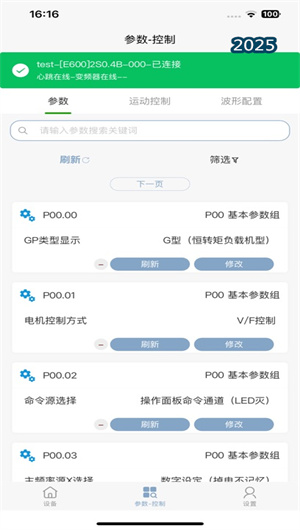 禾川變頻 App 提供參數(shù)設(shè)置功能,用戶可以通過手機輕松調(diào)整變頻器的運行頻率、加速時間、減速時間等參數(shù)。通過預(yù)設(shè)模式和自定義配置,用戶可以根據(jù)實際需求優(yōu)化設(shè)備運行效率。此外,參數(shù)設(shè)置還支持一鍵保存和快速調(diào)用,方便用戶在不同場景下快速切換配置。