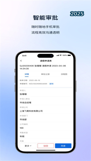 快鷺云 App 提供AI智能審批功能,通過自然語言處理和機器學習算法,自動識別審批內容并生成審批建議。用戶可以通過移動端或PC端隨時提交和審批申請,實現跨部門協同和流程自動化。此外,智能審批還支持審批流程自定義,企業可以根據實際需求靈活調整審批規則。